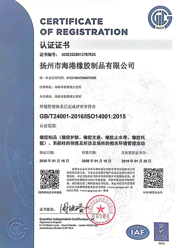 揚州市海港橡膠制品有限公司位于揚州市北郊,依傍于淮江、京滬高速公路,美麗的高郵湖緊鄰我公司,風景秀麗,水、陸暢通。我公司是專業(yè)生產(chǎn)橡膠制品的企業(yè),生產(chǎn)近二十個系列上百種規(guī)格型號的橡膠護舷、橡膠止水帶,為滿足軍用碼頭的需要,又開發(fā)了各種規(guī)格的淺灰色橡膠護舷。擁有千萬元的生產(chǎn)規(guī)模,力量雄厚,檢測設備齊全。